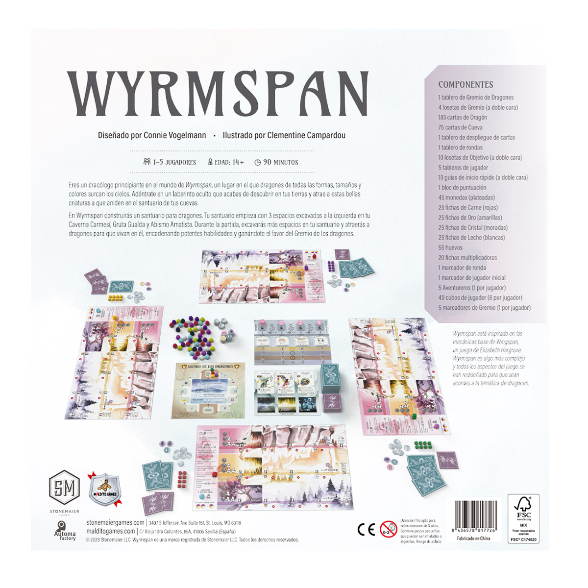 Eres un dracólogo principiante en el mundo de Wyrmspan, un lugar en el que dragones de todas las formas, tamaños y colores surcan los cielos. Adéntrate en un laberinto oculto que acabas de descubrir en tus tierras y atrae a estas bellas criaturas a que aniden en el santuario de tus cuevas.