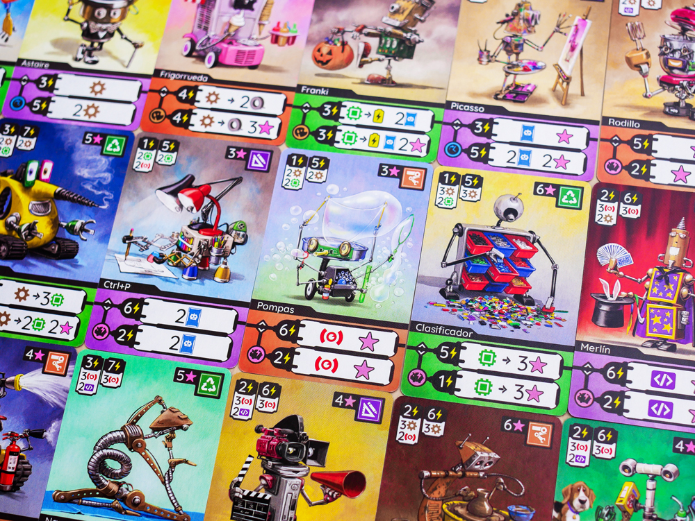 En cada ronda, los jugadores eligen de forma simultánea 2 de las 5 fases para resolverlas con distintas cantidades de Energía, pero tus elecciones pueden afectar a otros jugadores. ¡Cada elección afectará a los demás inventores!