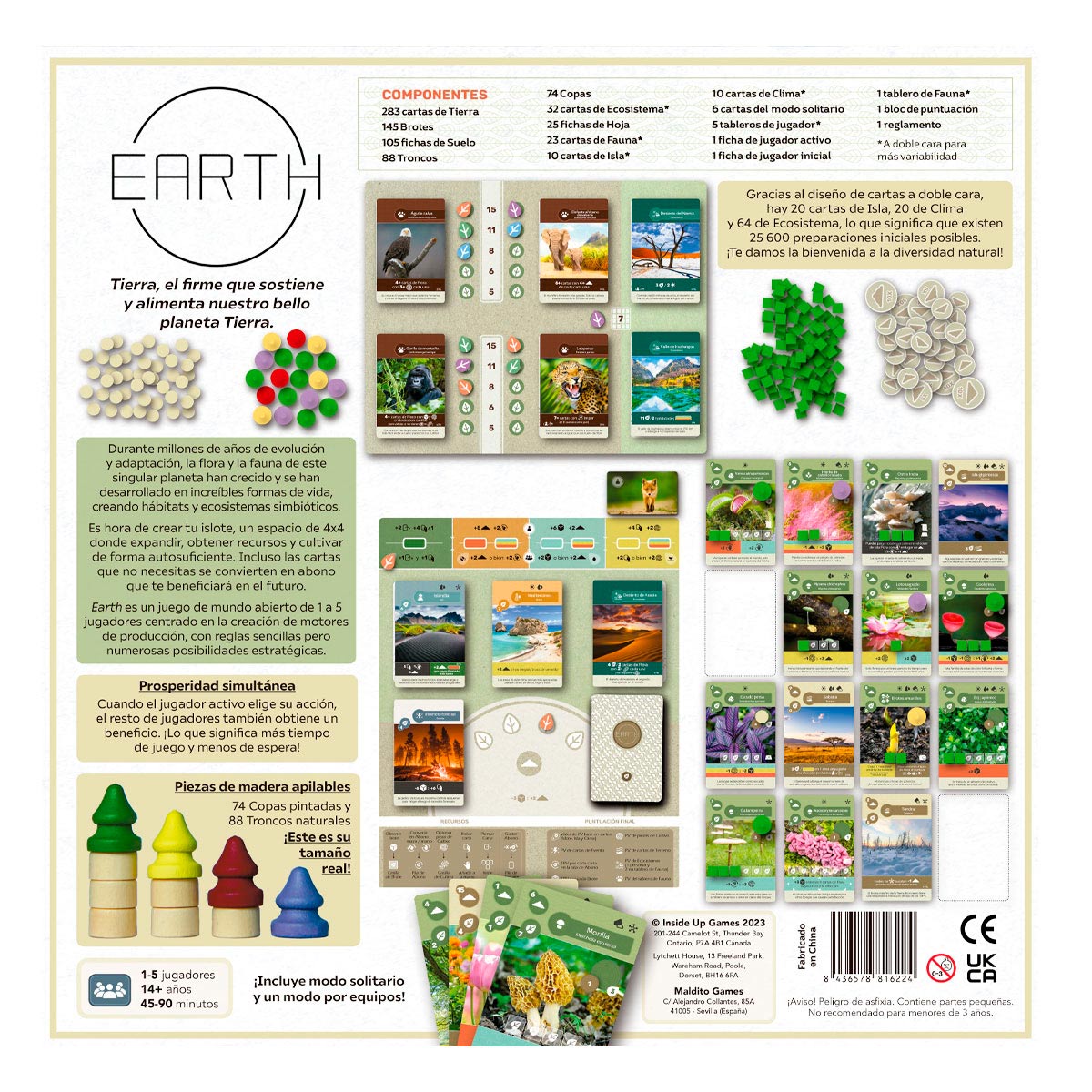 Earth es un juego de mundo abierto de 1 a 5 jugadores centrado en la creación de motores de producción, con reglas sencillas pero numerosas posibilidades estratégicas.